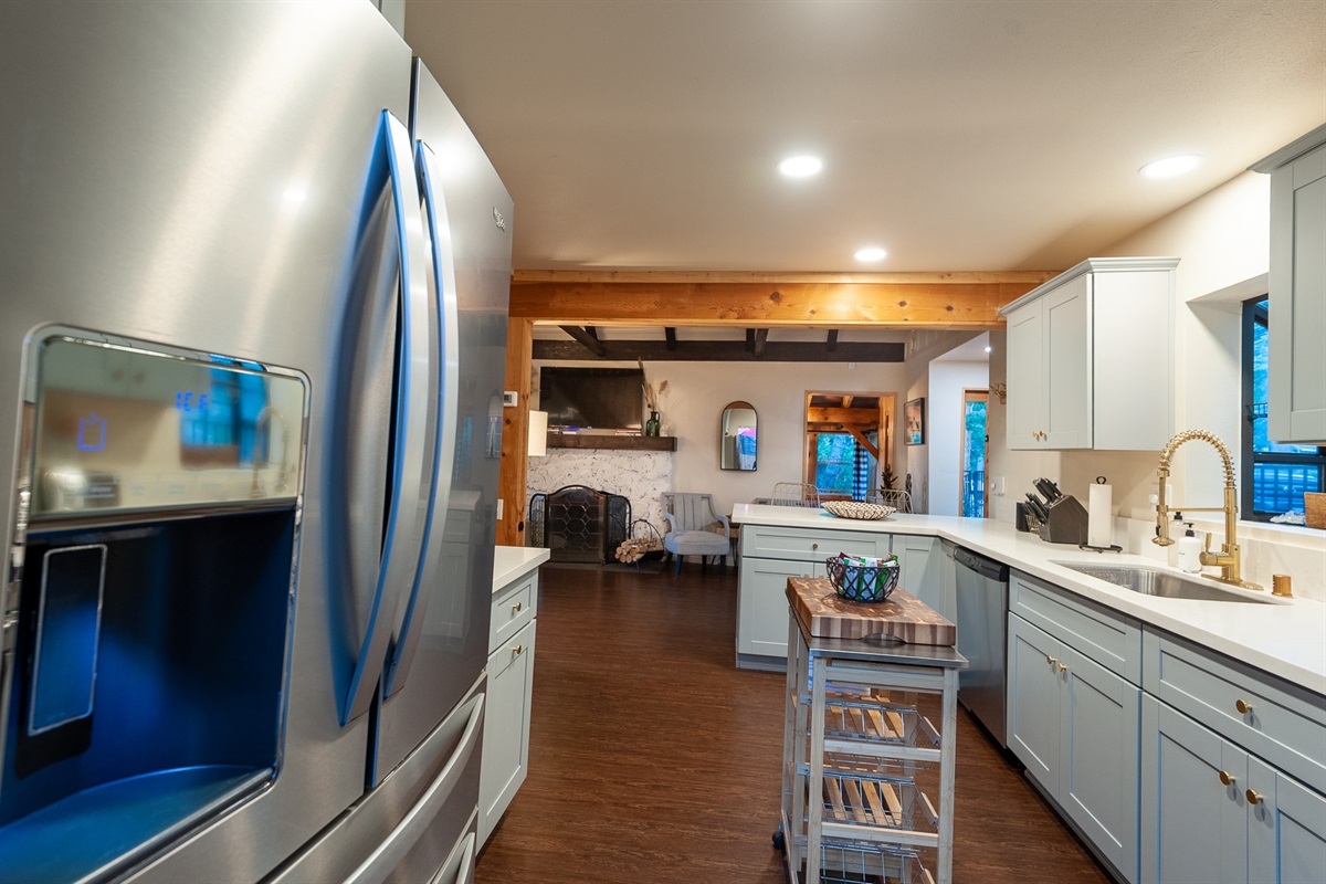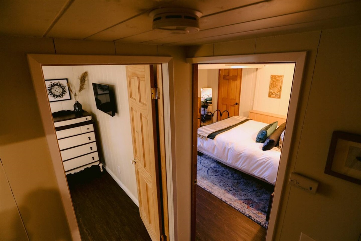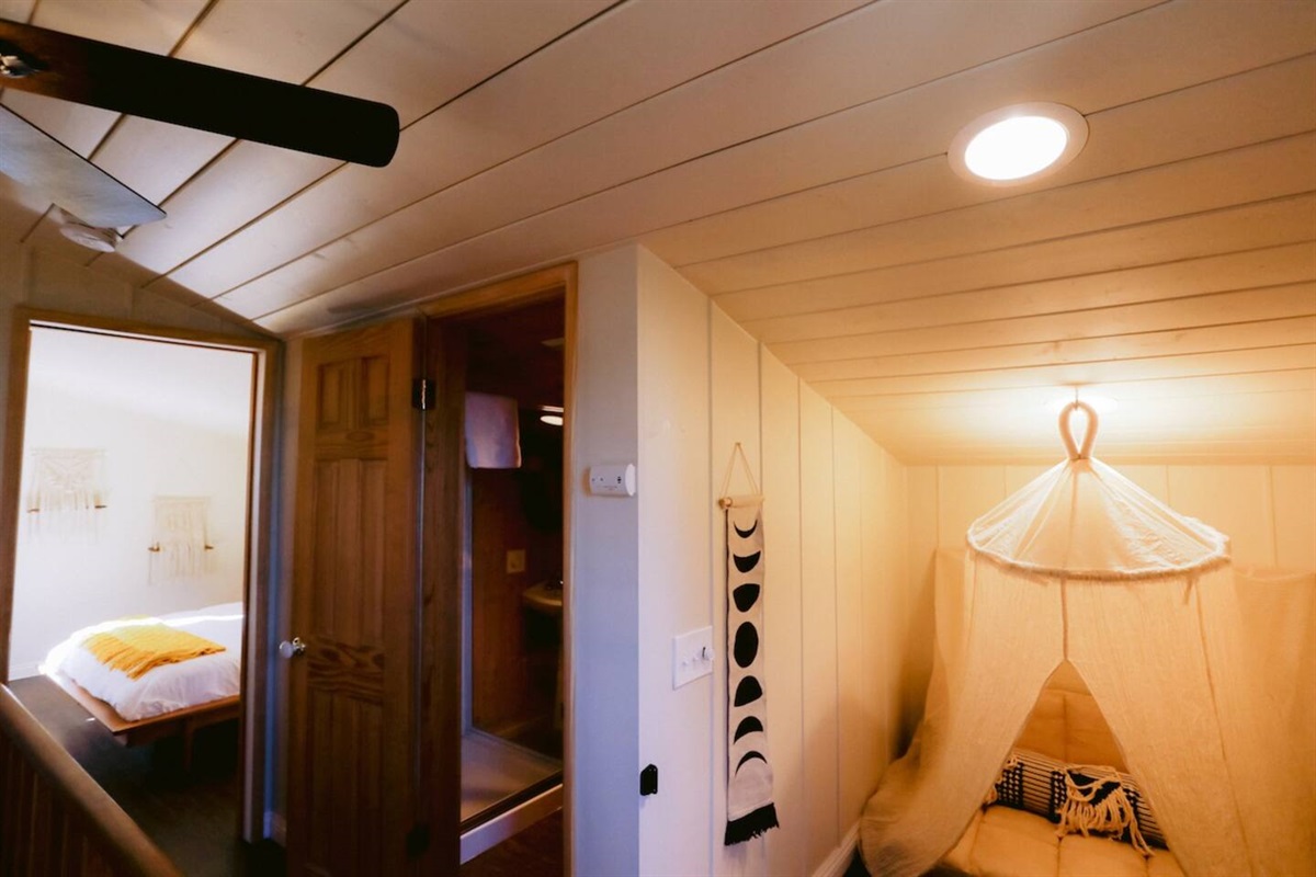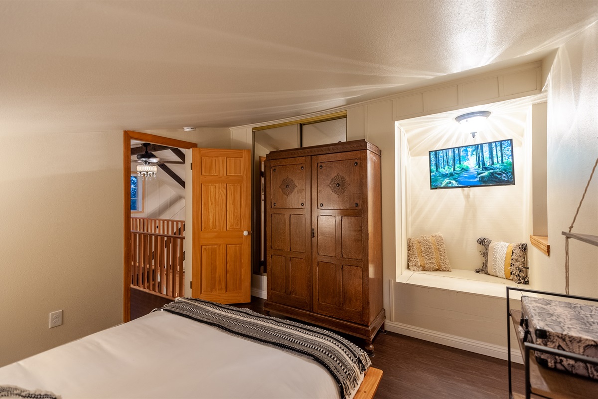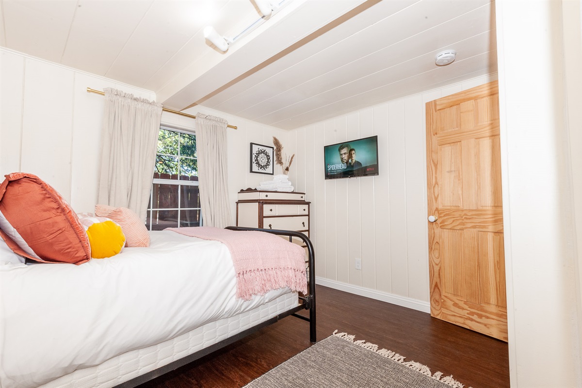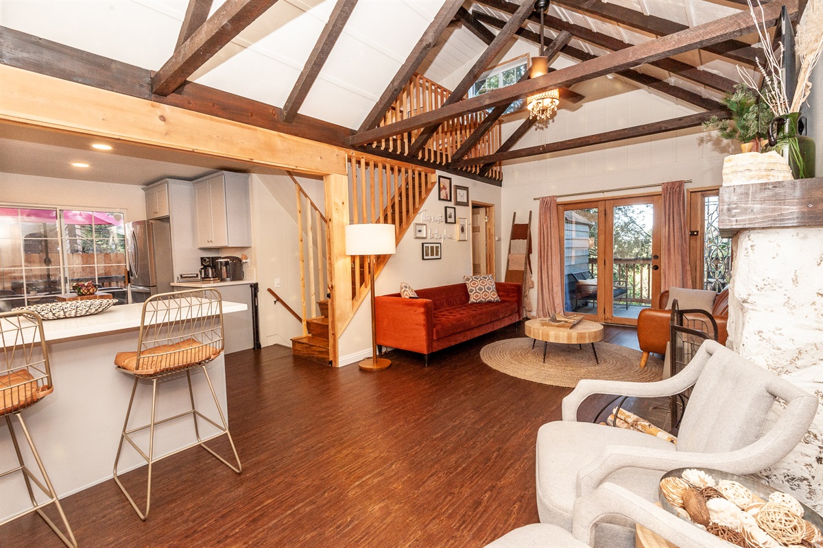 4 Bedrooms • 3 Bathrooms 3 Baths • Sleeps 1-8Relax and unwind at Cedar Pines, our stylish 1928 Cabin in the woods, which has been recently renovated with Mid-Century Modern decor. Our cabin is family friendly and is equipped with all of your needs in mind. The cabin is a 4 bedroom, 3 bath with 3 decks surrounded by beautiful trees. Our home is fully gated and has privacy fencing to enclose the property. We also have curated the most comfortable bedding and decor. We have combined the nostalgia of a mountain cabin with modern amenities to keep you in the present and make the cabin more sustainable by utilizing LED lighting, solar power where possible and avoiding disposable materials as much as we can. This serene cabin is an ideal get away for the whole family and makes a great home base for all of the activities Lake Arrowhead and San Bernardino Mountain resorts have to offer. There is shopping, restaurants, and outdoor activities throughout our mountain community. Lake Arrowhead Village is a 10 minute drive.